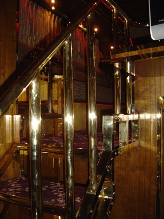 The weight of the custom truck and luxury trailer unit is over 50,000 pounds (25 tons). 50,560 pounds is the number on the books (22,933 kilograms). The weight comes from, besides the fact that it’s a Peterbilt 379 tractor and a trailer, is that it’s outfitted to be comfortable for 40 people. There are 40 seats spread over the unit. Can you imagine driving through the mountains, the desert, or along the coast with 40 family and friends in a giant limo?