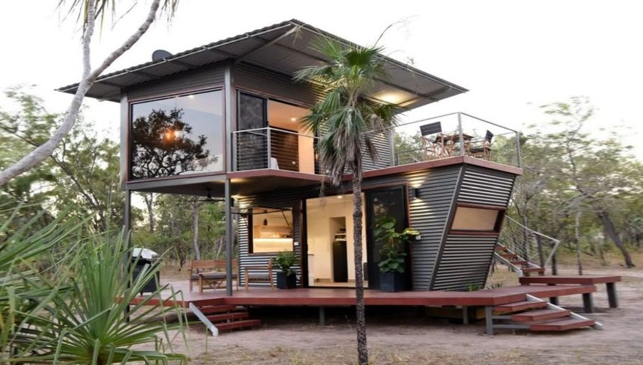 It’s actually one of Fresh Prince’s new Eco Huts, and is intended as a getaway from the busy urban city life to someplace relaxing and surrounded by nature. And in keeping with that, the views from the second story of this shipping container home are great. 360 degrees.