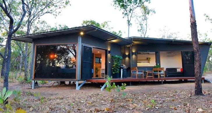 It’s actually one of Fresh Prince’s new Eco Huts, and is intended as a getaway from the busy urban city life to someplace relaxing and surrounded by nature. And in keeping with that, the views from the second story of this shipping container home are great. 360 degrees.