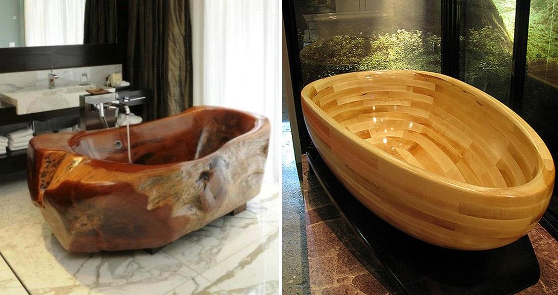 I have always had a standard ceramic bath tub, and in some places there’s only been a shower. So this is something I haven’t even thought of before: a wooden bathtub.